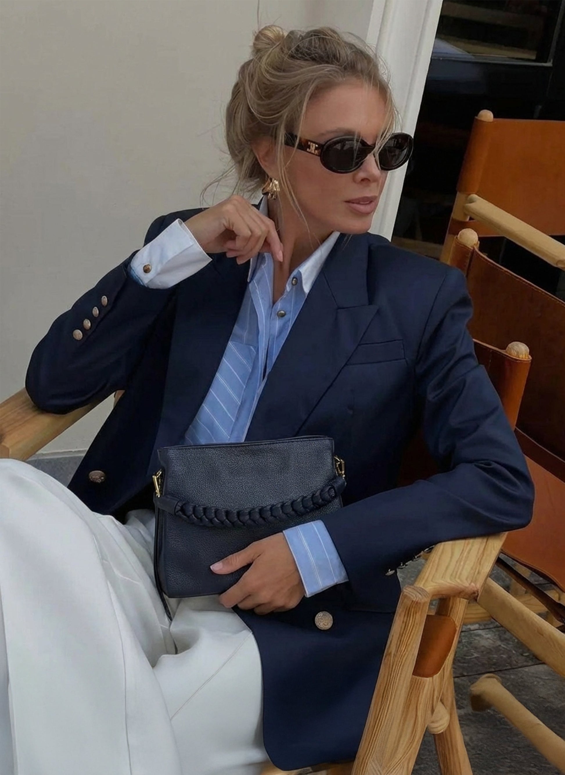 Borsa Braid Micro in pelle Dollaro Blu Navy