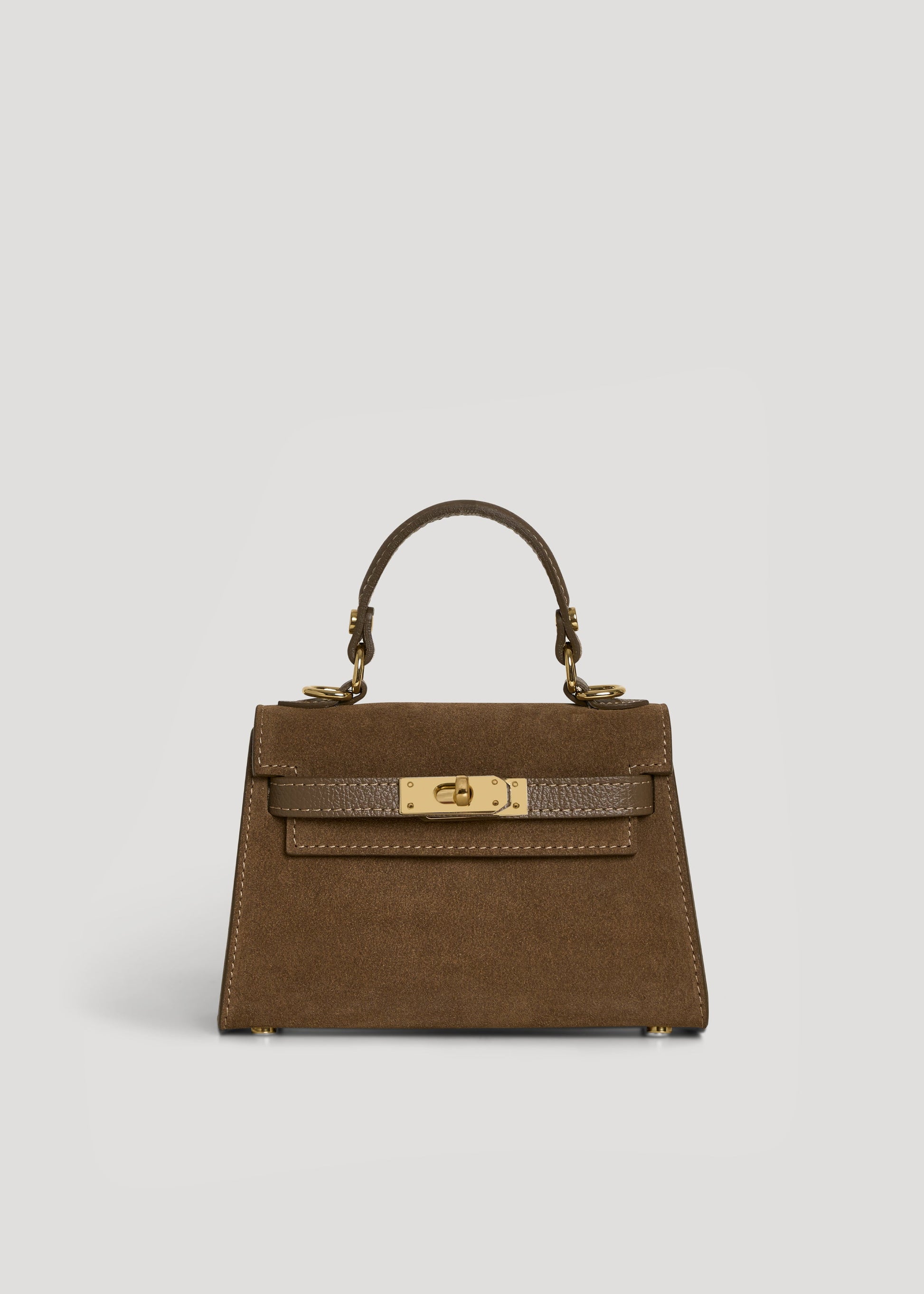 Borsa Victoria in Camoscio e Pelle Taupe scuro